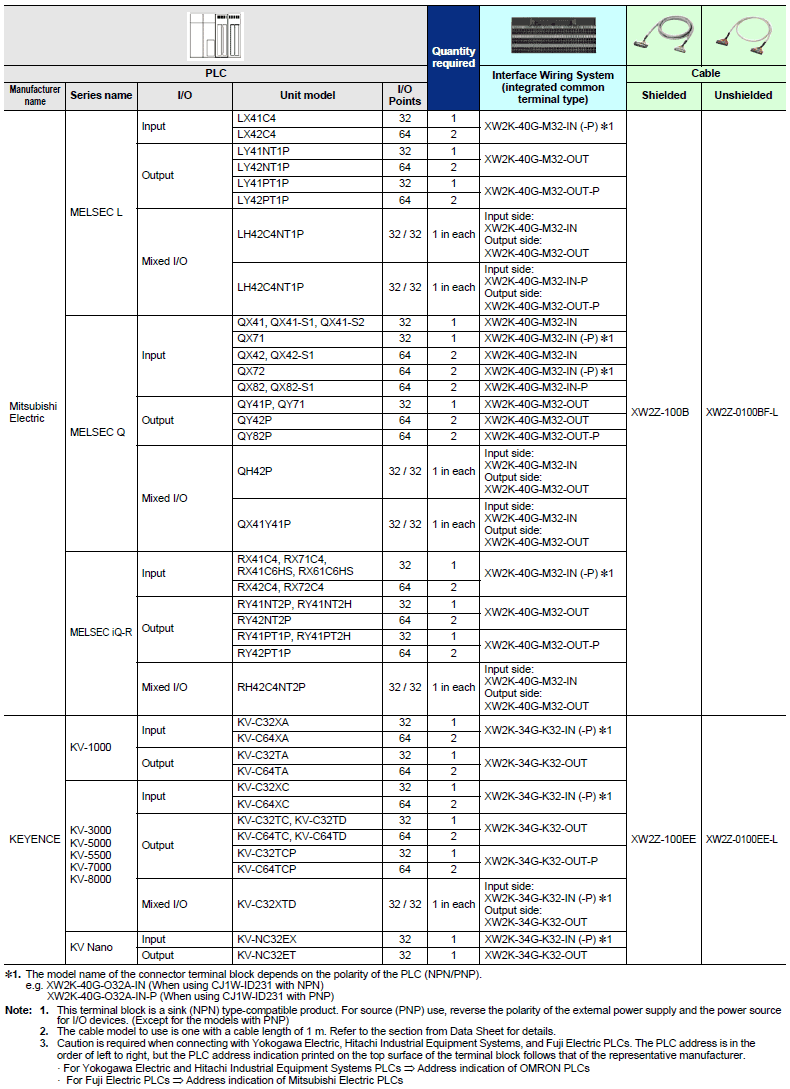 *1. The appearance shows the models of circuit patterns A and B. Circuit pattern C (XW2K-40G-O32C-IN/OUT) has a