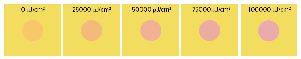 UVC exposure reference chart can be used to demonstrate the color changes associated with various energy levels.